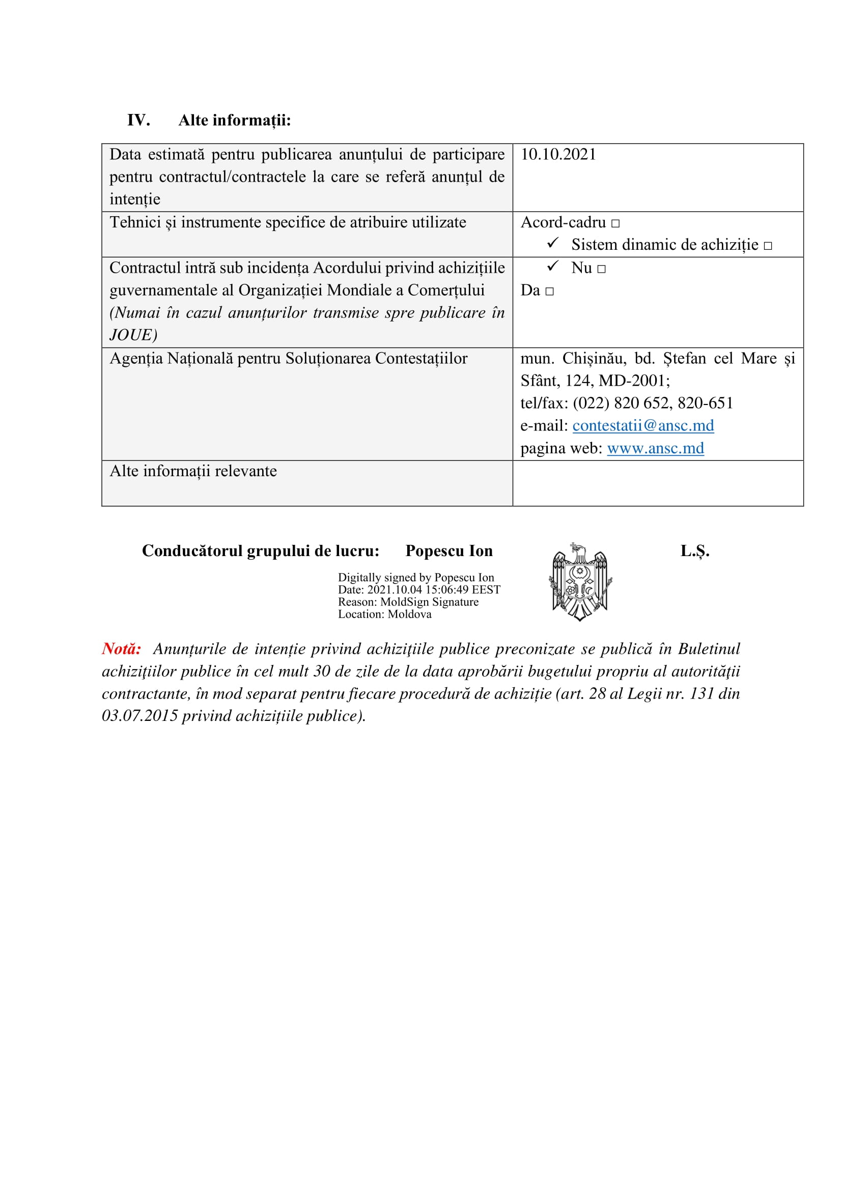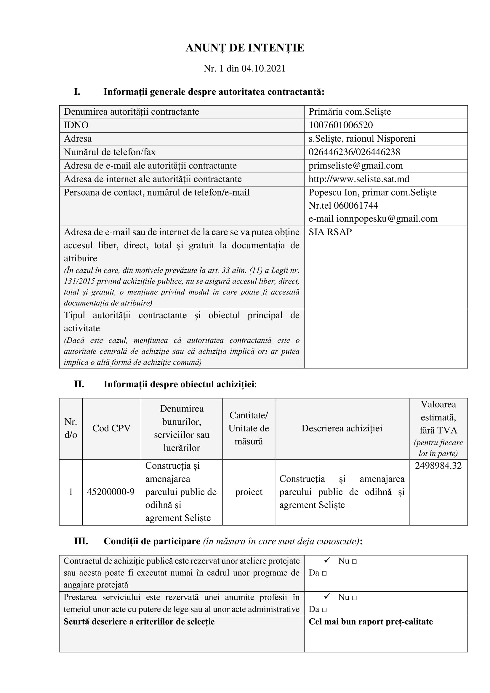 Anunț de intenție